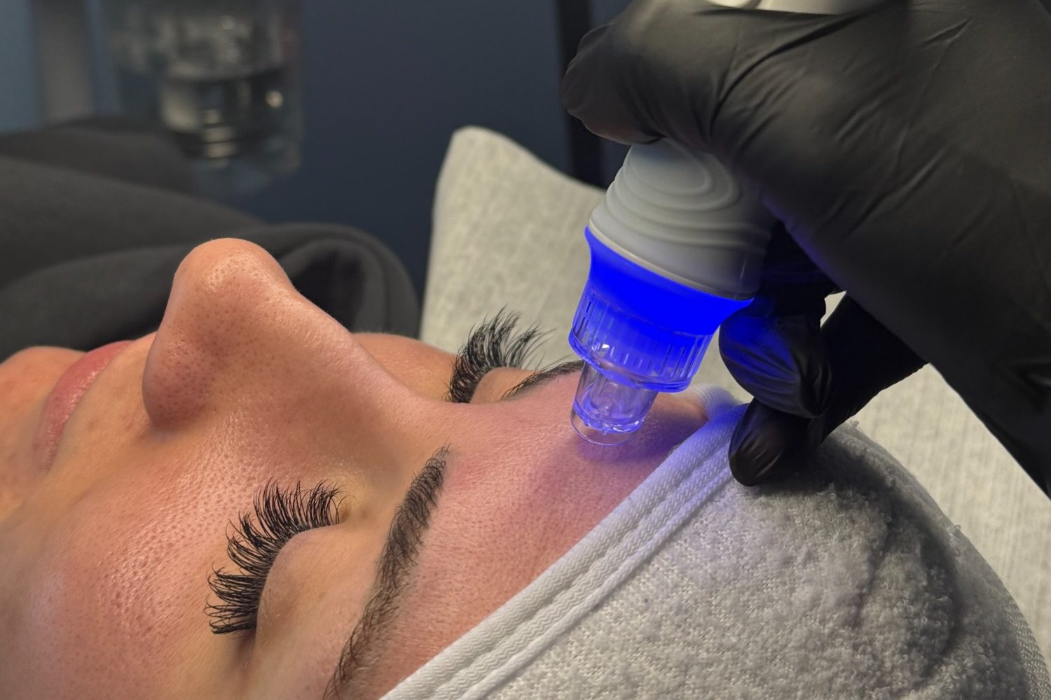 Ein Aquafacial ist eine schonende, porentiefe Gesichtsbehandlung, die die Haut reinigt, mit Feuchtigkeit versorgt und ihr ein frisches, strahlendes Aussehen verleiht.